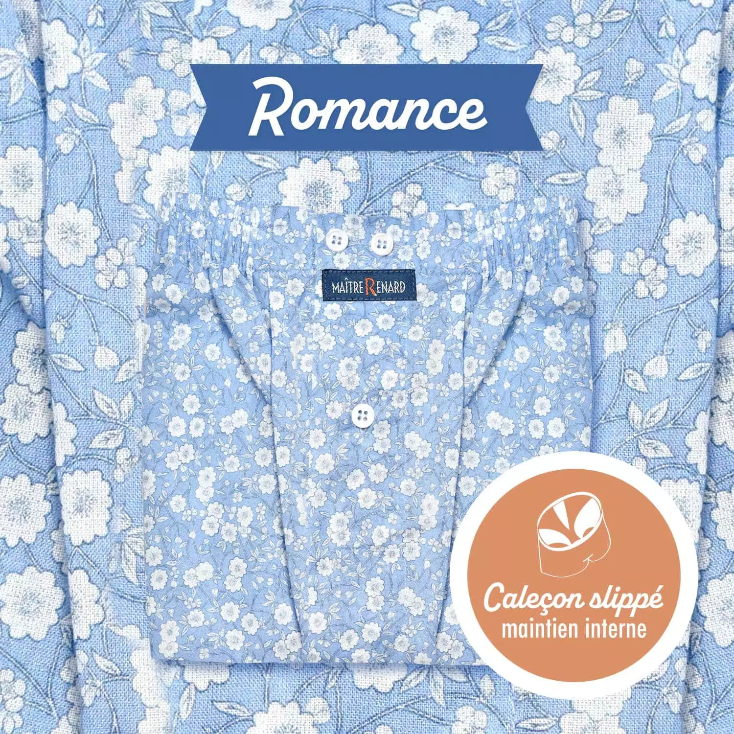 Caleçon homme avec maintien fleurs bleues en Voile de coton.