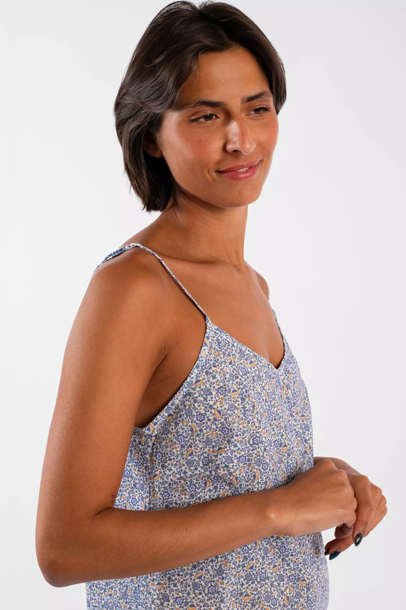 Détails : Caraco à fines bretelles, pinces poitrine et légère encolure en V.