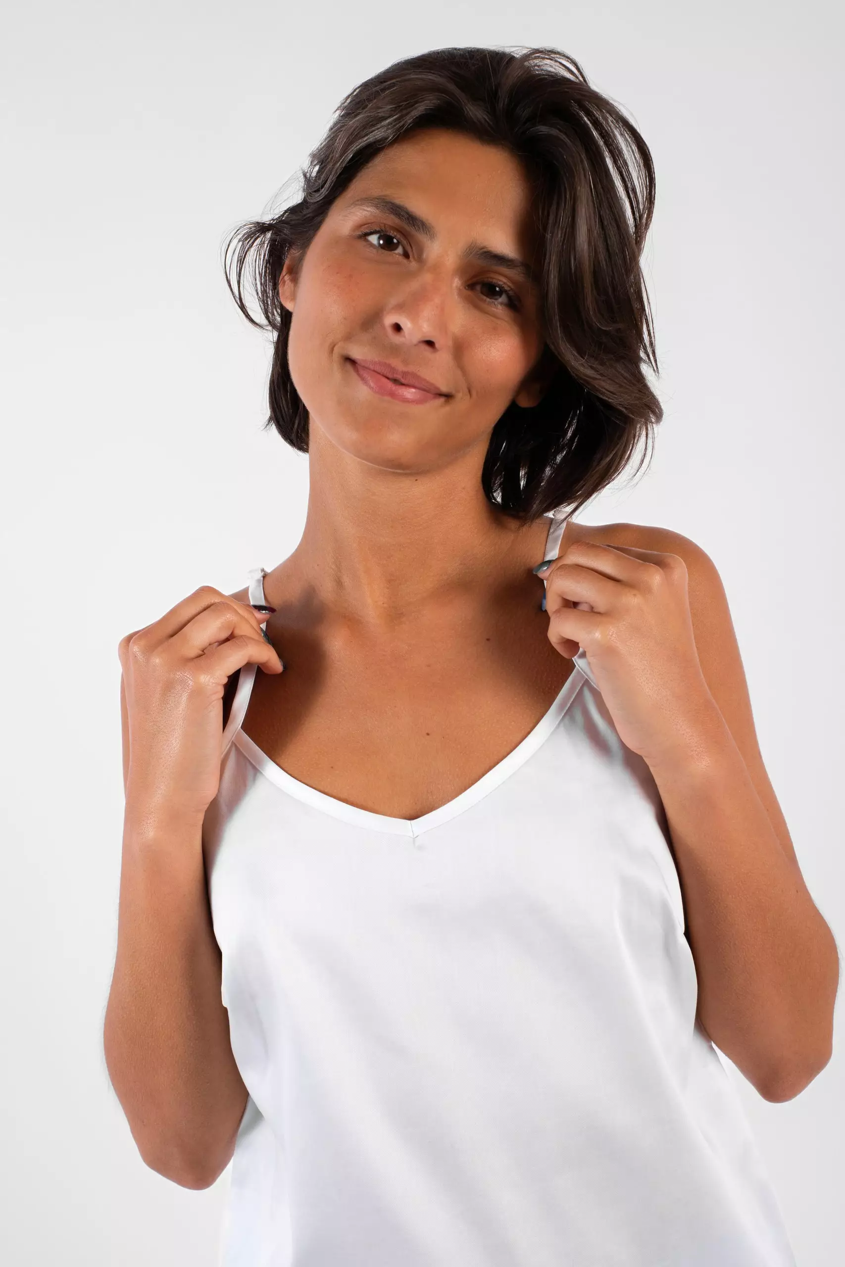 Top à bretelles très agréable à porter que vous pouvez accompagner d’une culotte bouffante, d’un short femme ou d’un pantalon de pyjama.