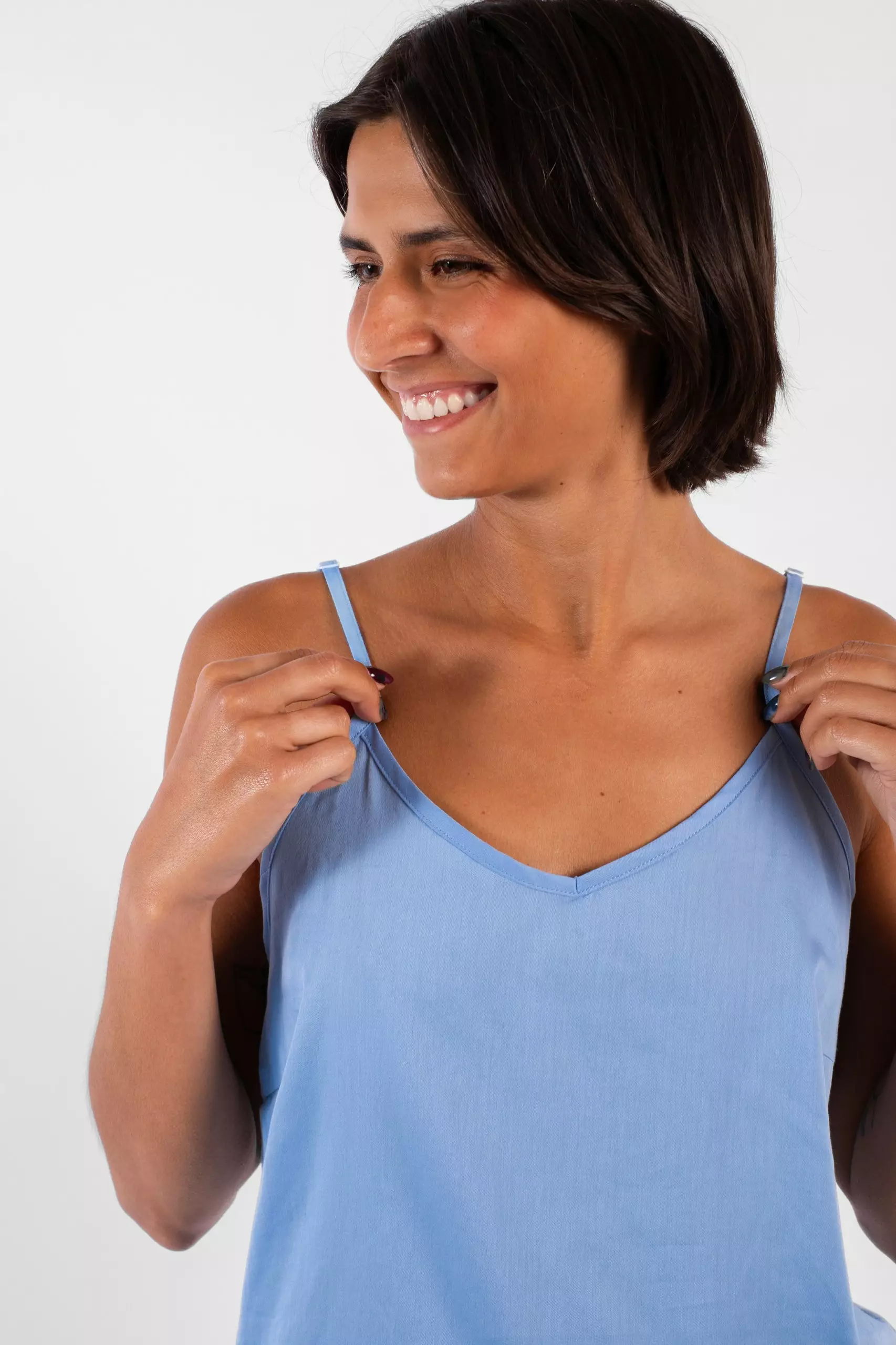 Détails : Caraco à fines bretelles, pinces poitrine et légère encolure en V.