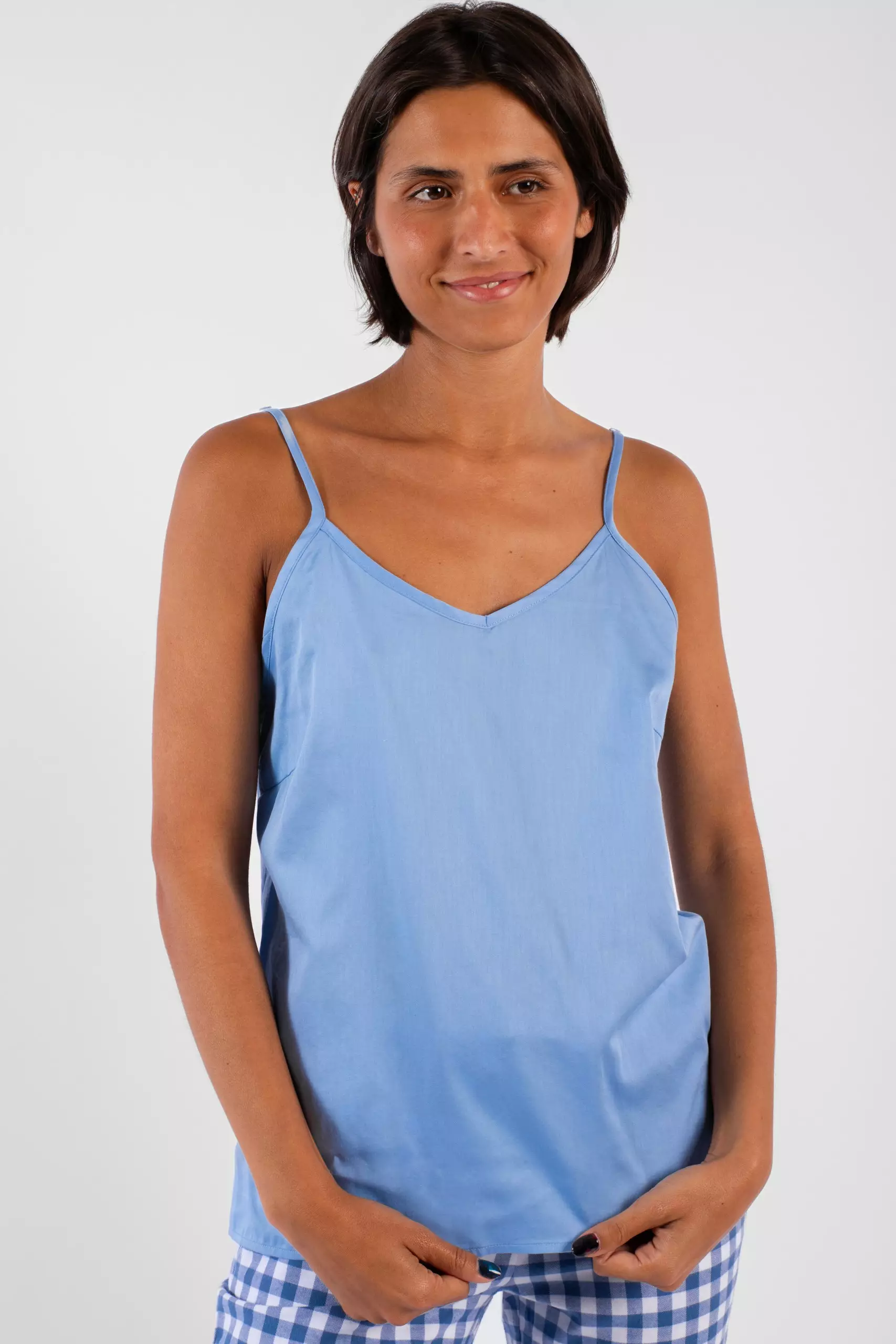 Top à bretelles très agréable à porter que vous pouvez accompagner d’une culotte bouffante, d’un short femme ou d’un pantalon de pyjama.