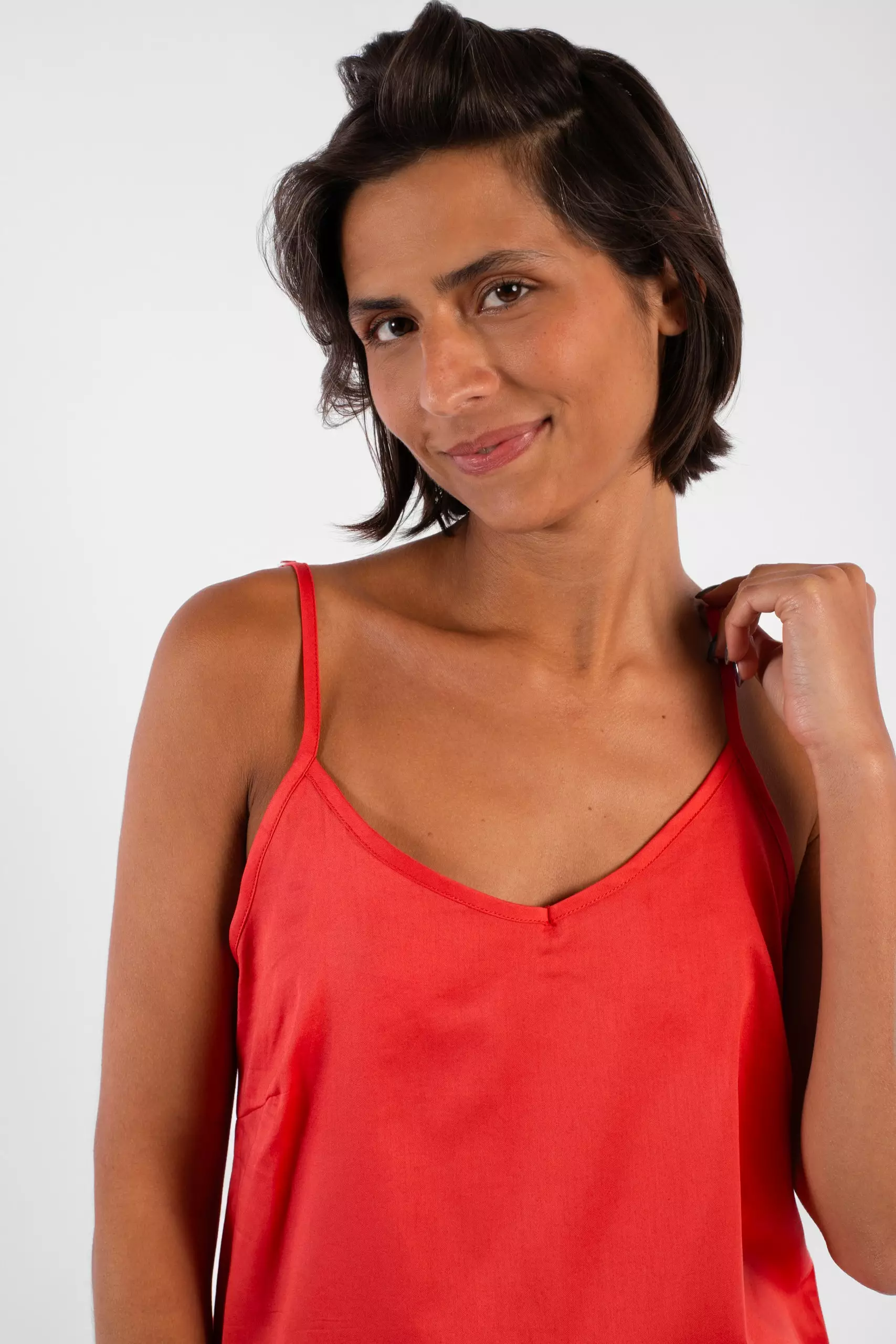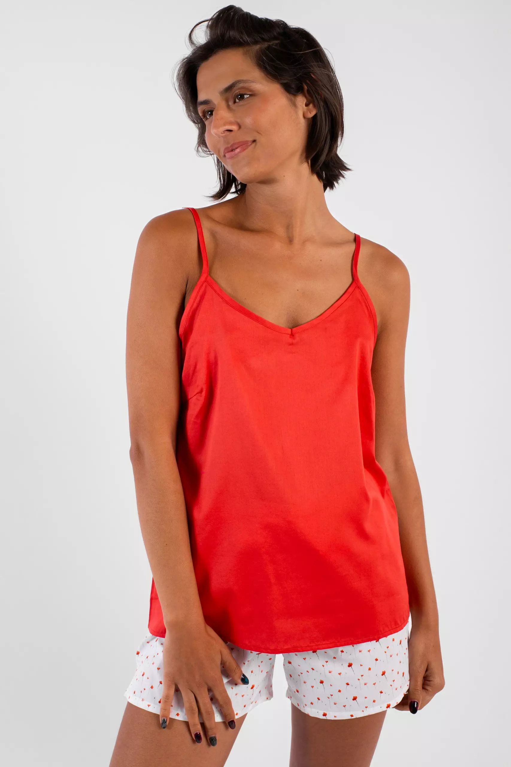Détails : Caraco à fines bretelles, pinces poitrine et légère encolure en V.