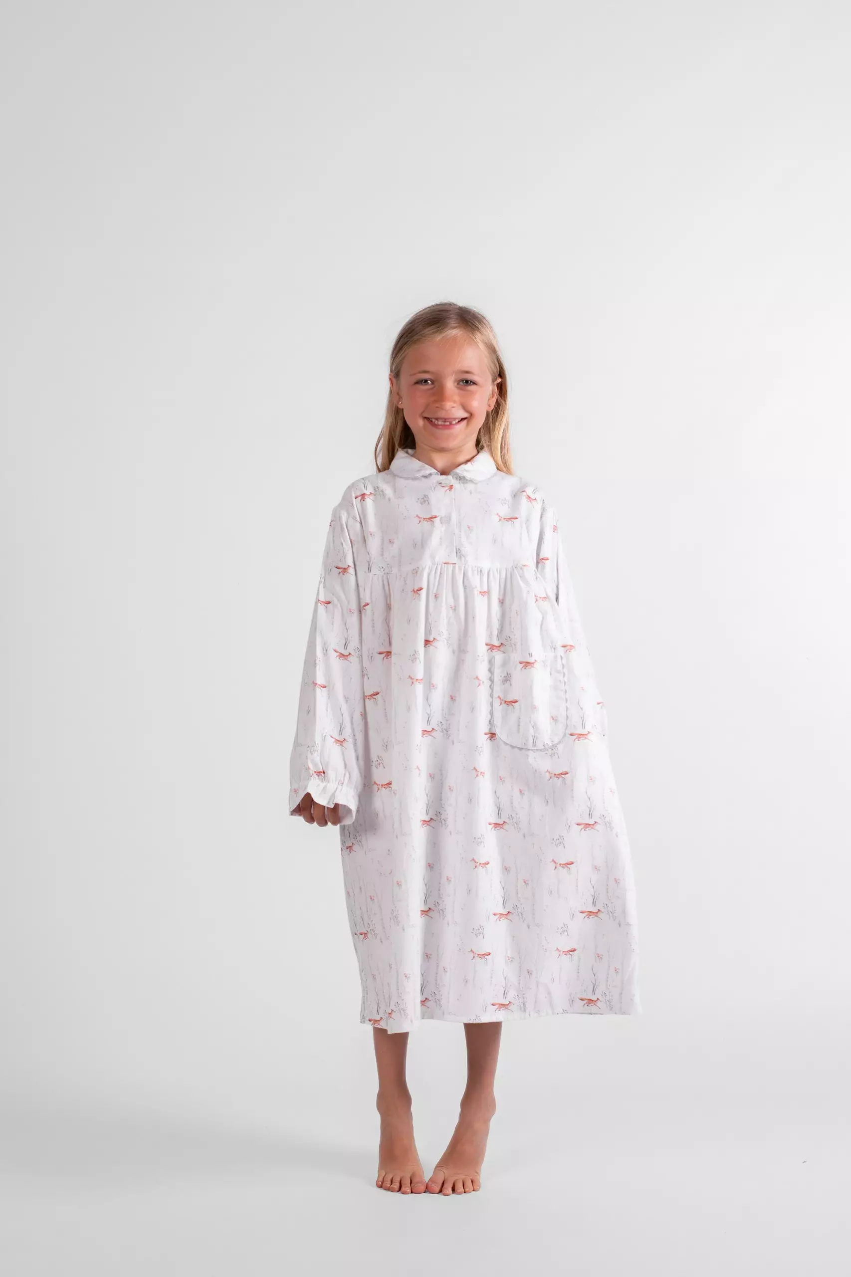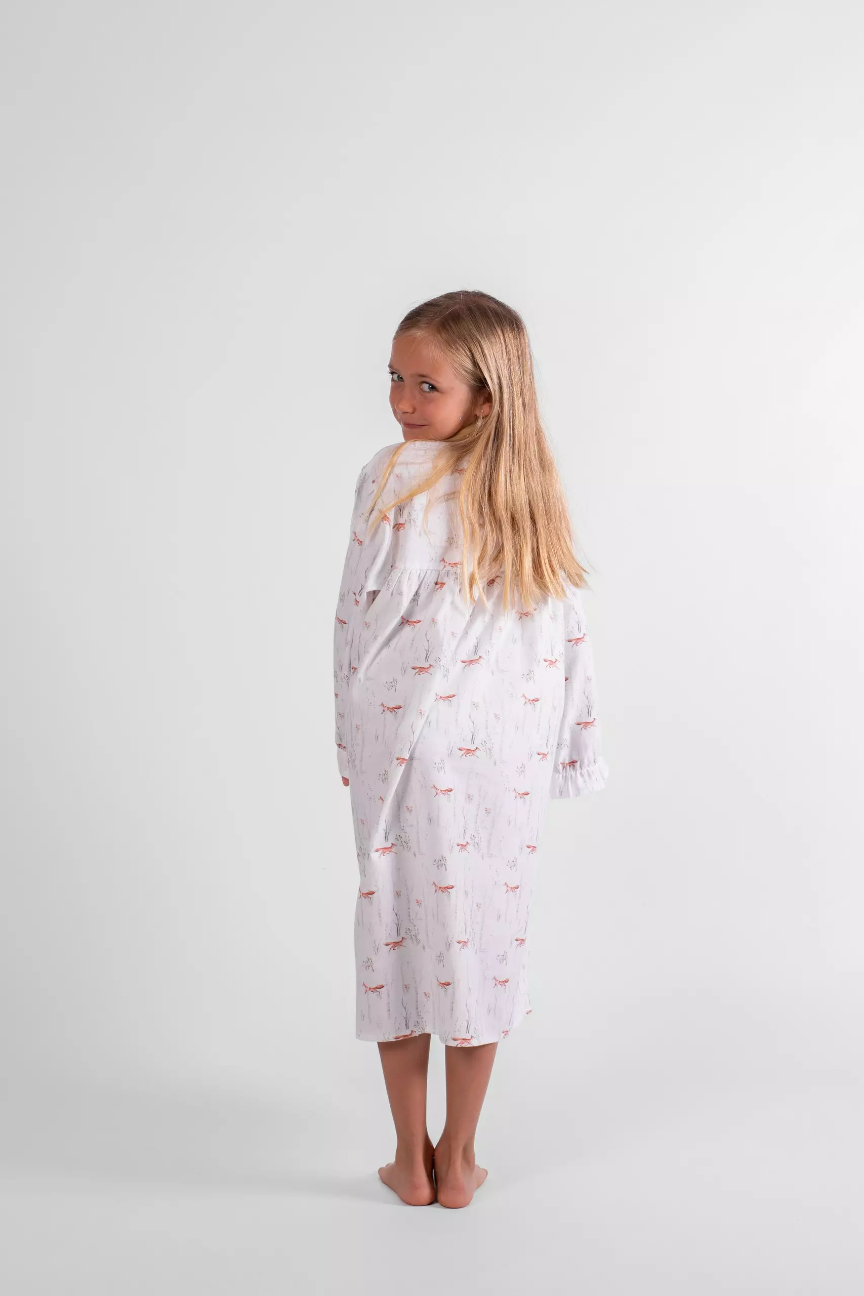 Chemise de nuit longue fille flanelle pilou motif renard foret.