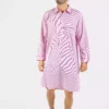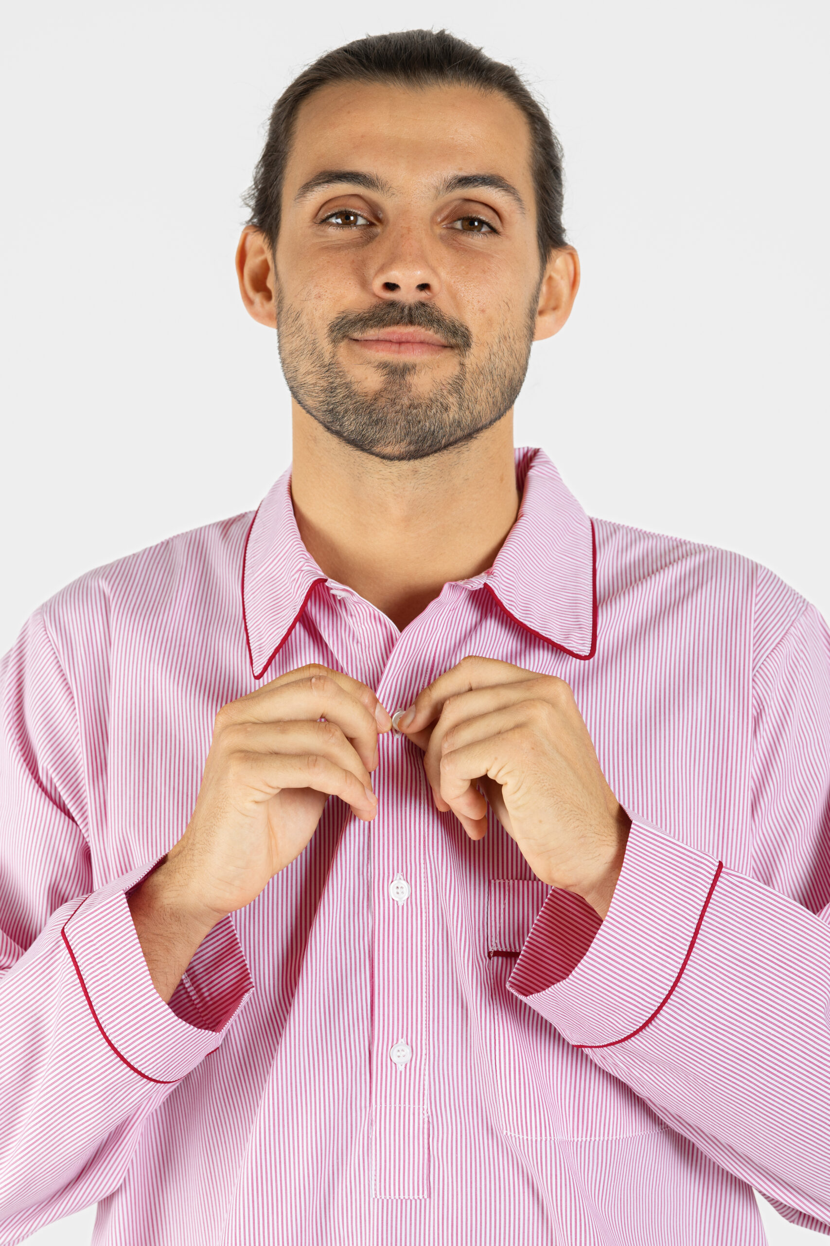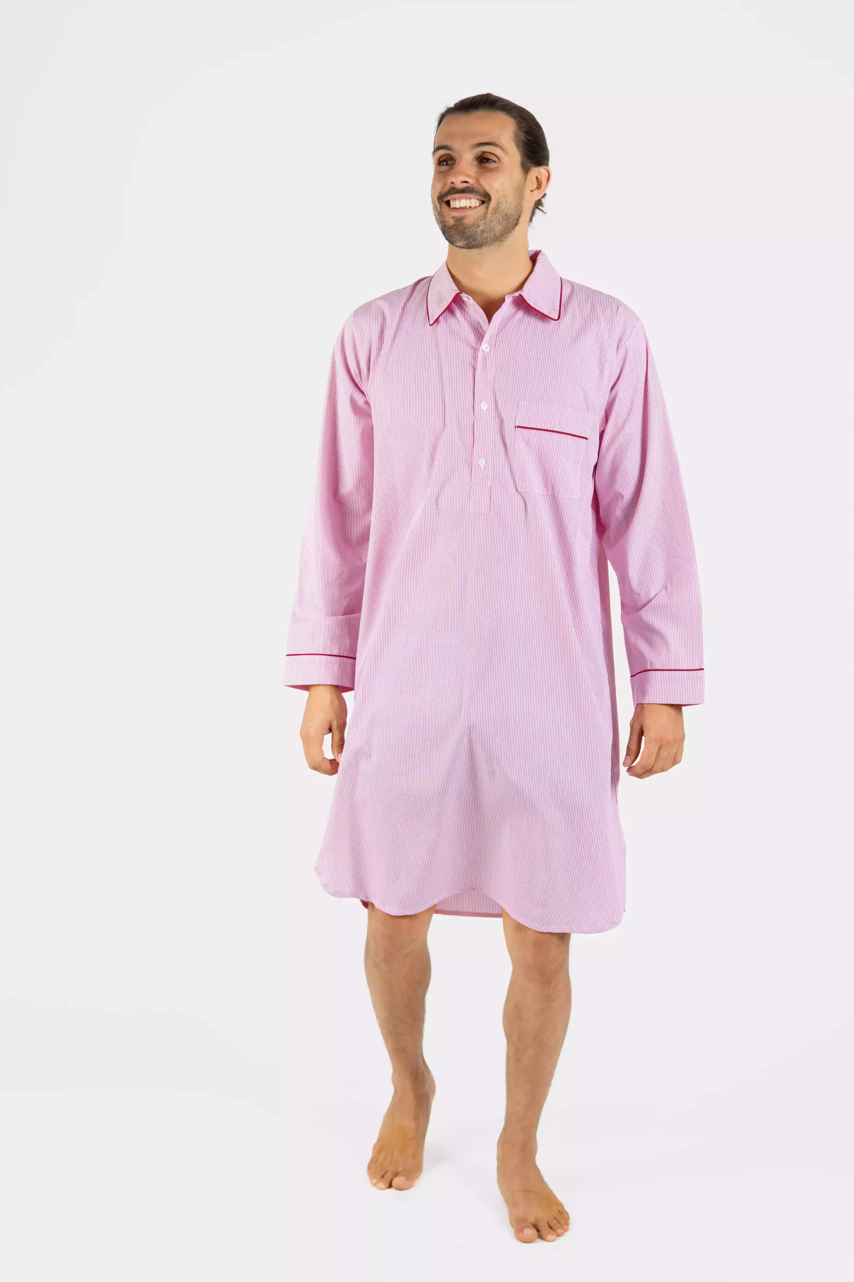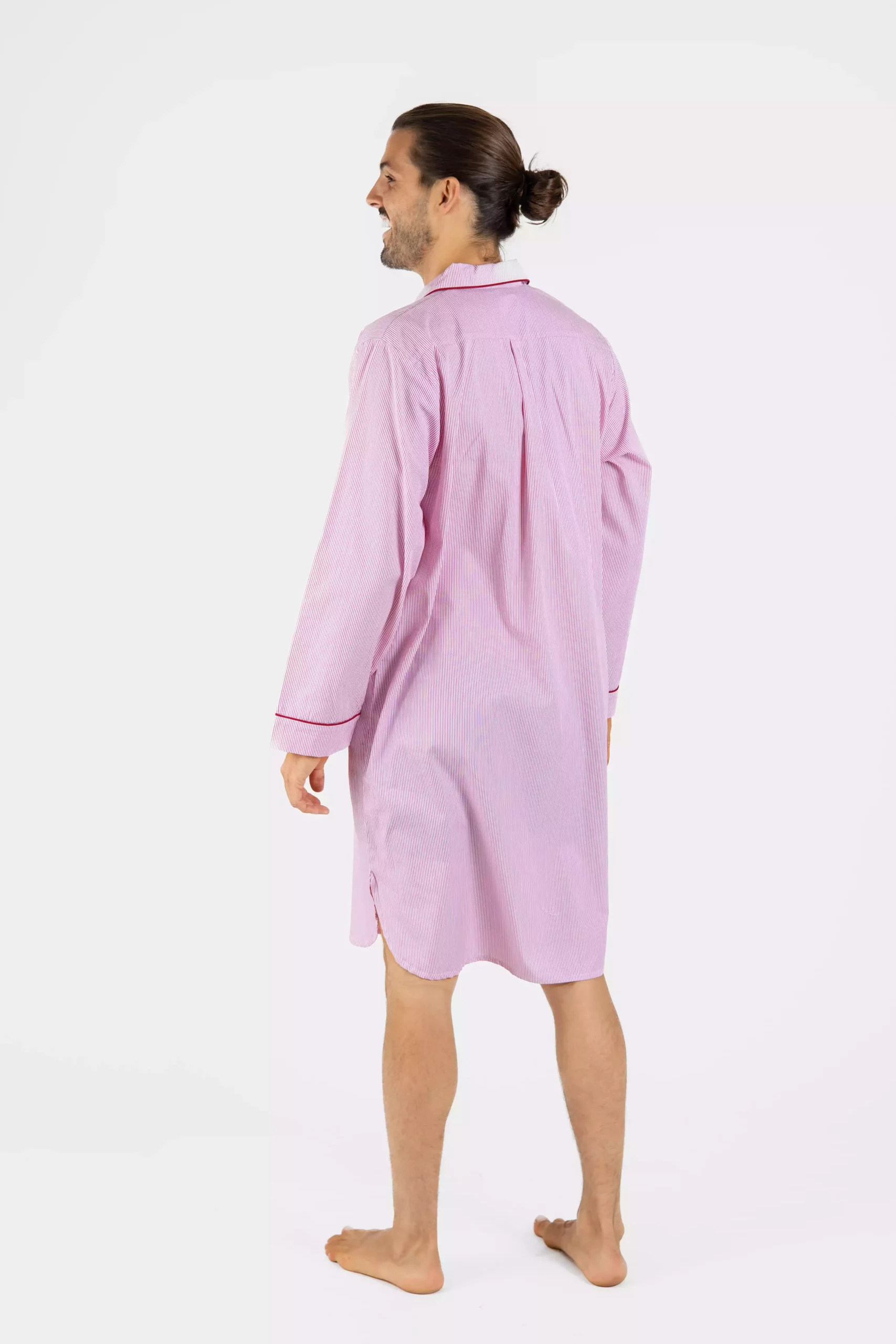 Chemise de nuit homme rayée rouge en popeline de coton.