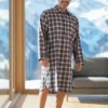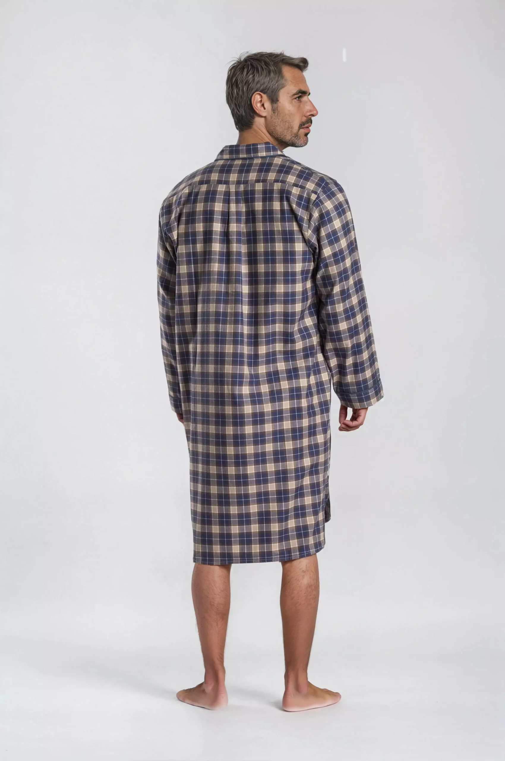 Chemise de nuit homme carreaux bleu/beige en Flanelle de coton (Tissu chaud) – Motif Les Arcs.