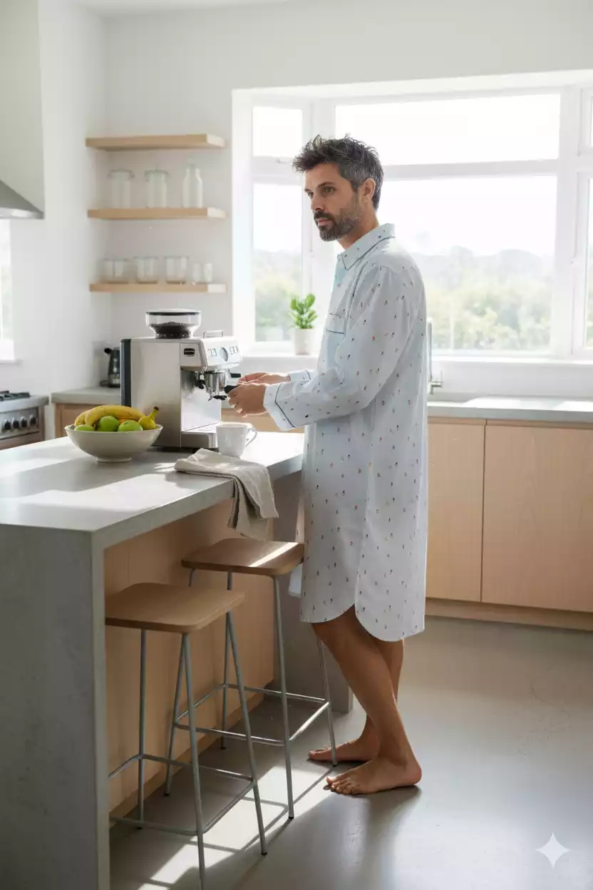 Détails : Chemise de nuit homme manches longues avec sa poche poitrine.