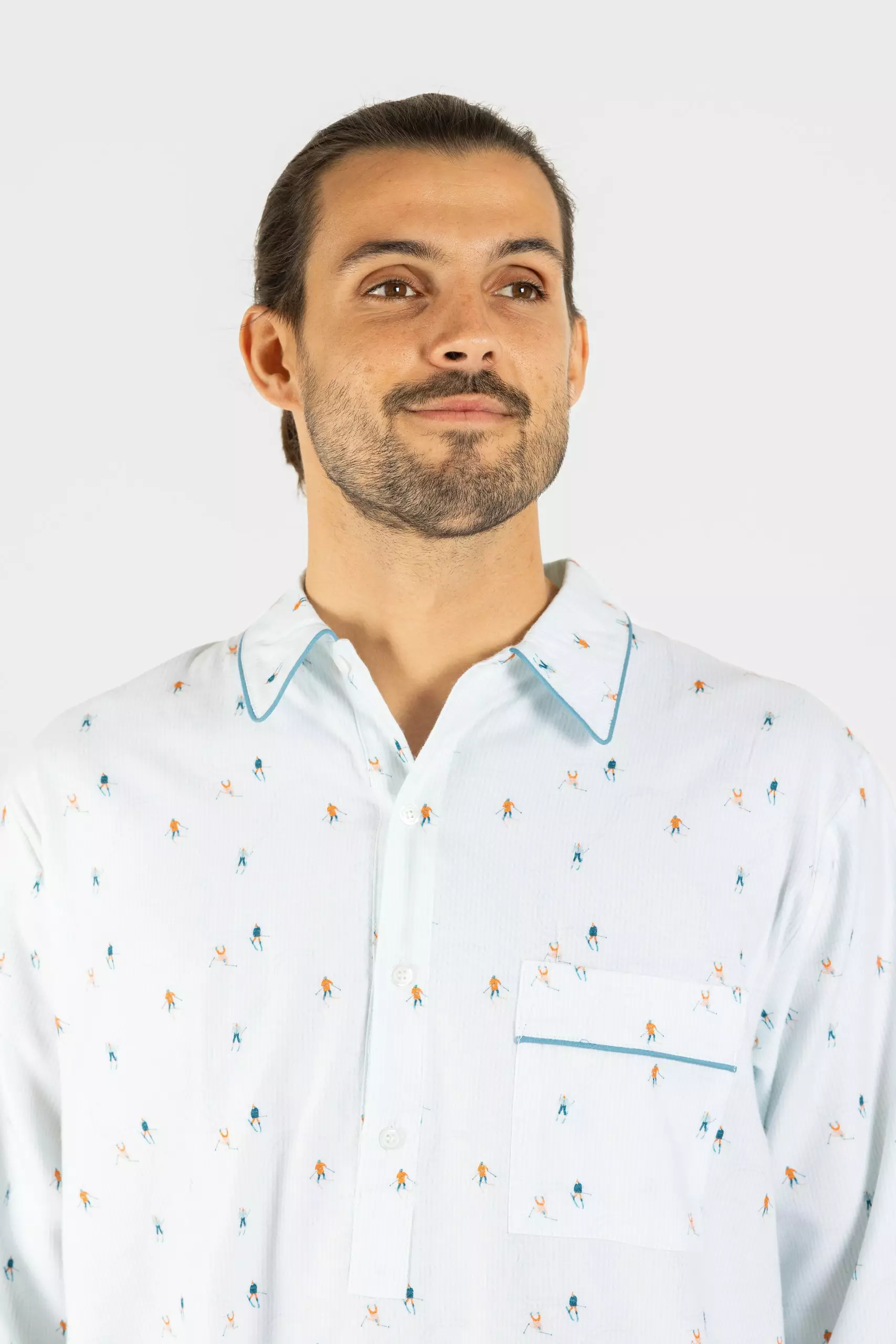 Chemise de nuit homme motif skieur en pilou chaud pour cet hiver à la montagne.