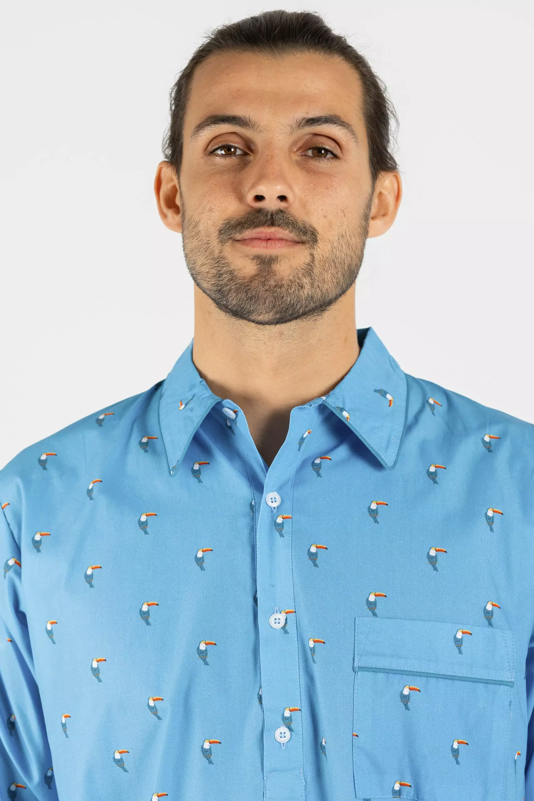 Détails : Chemise de nuit homme manches longues avec sa poche poitrine.