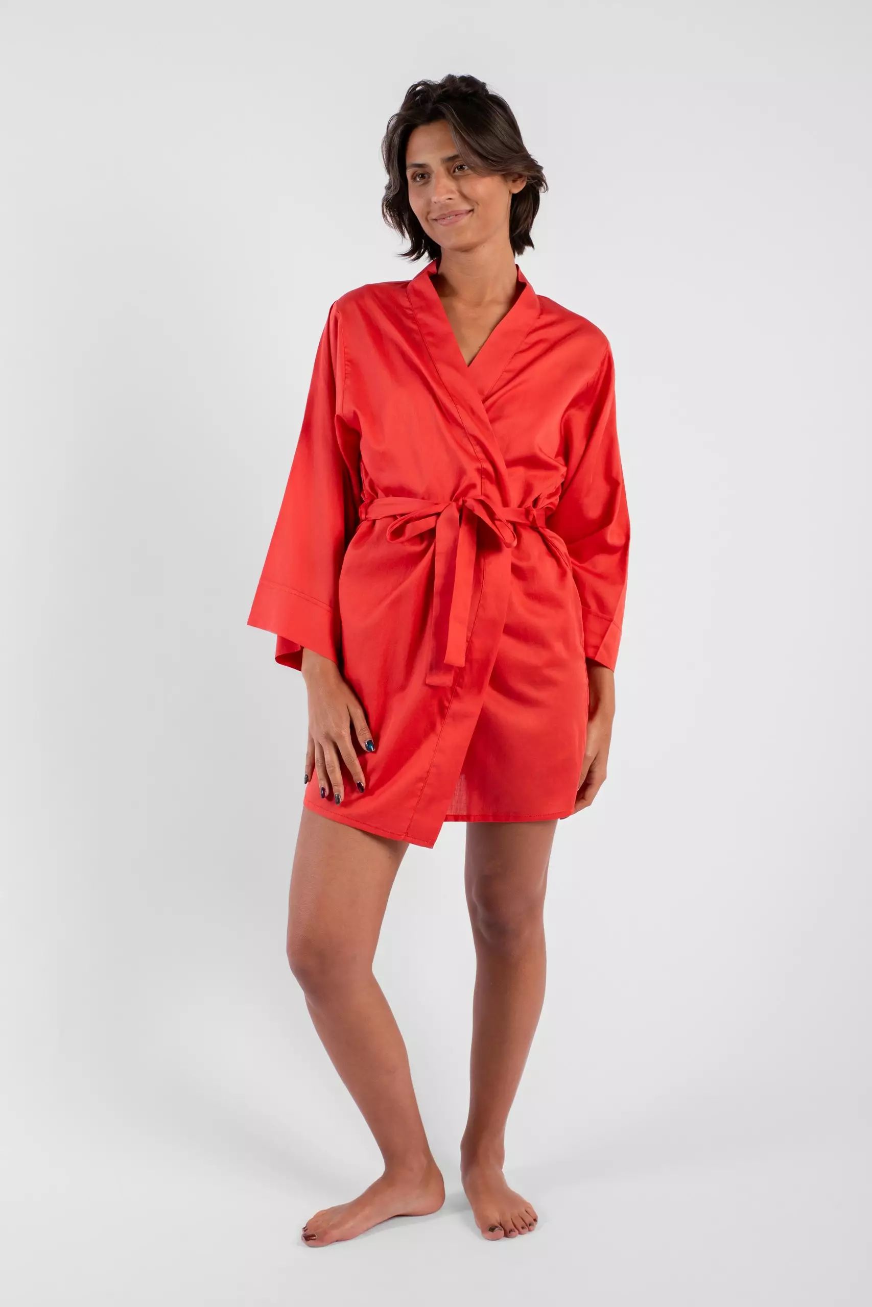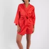 Idéal comme robe de chambre à la sortie du lit, du bain, de la plage ou bien uniquement pour flâner avec élégance à la maison, ce déshabillé style « Kimono » en satin de coton de couleur rouge est un véritable allié à la maison.Il se rendra très vite indispensable!