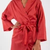 Déshabillé Kimono « Rouge uni » en satin de coton