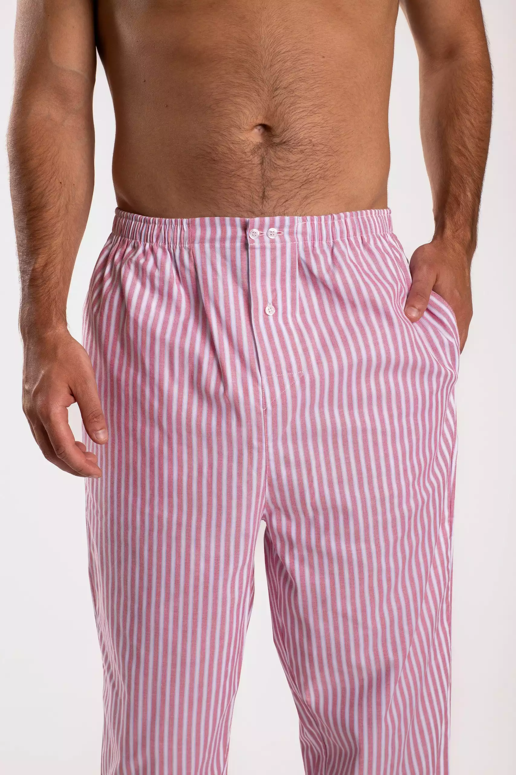 Pantalon de pyjama rayé rouge en Popeline de coton Santorin.