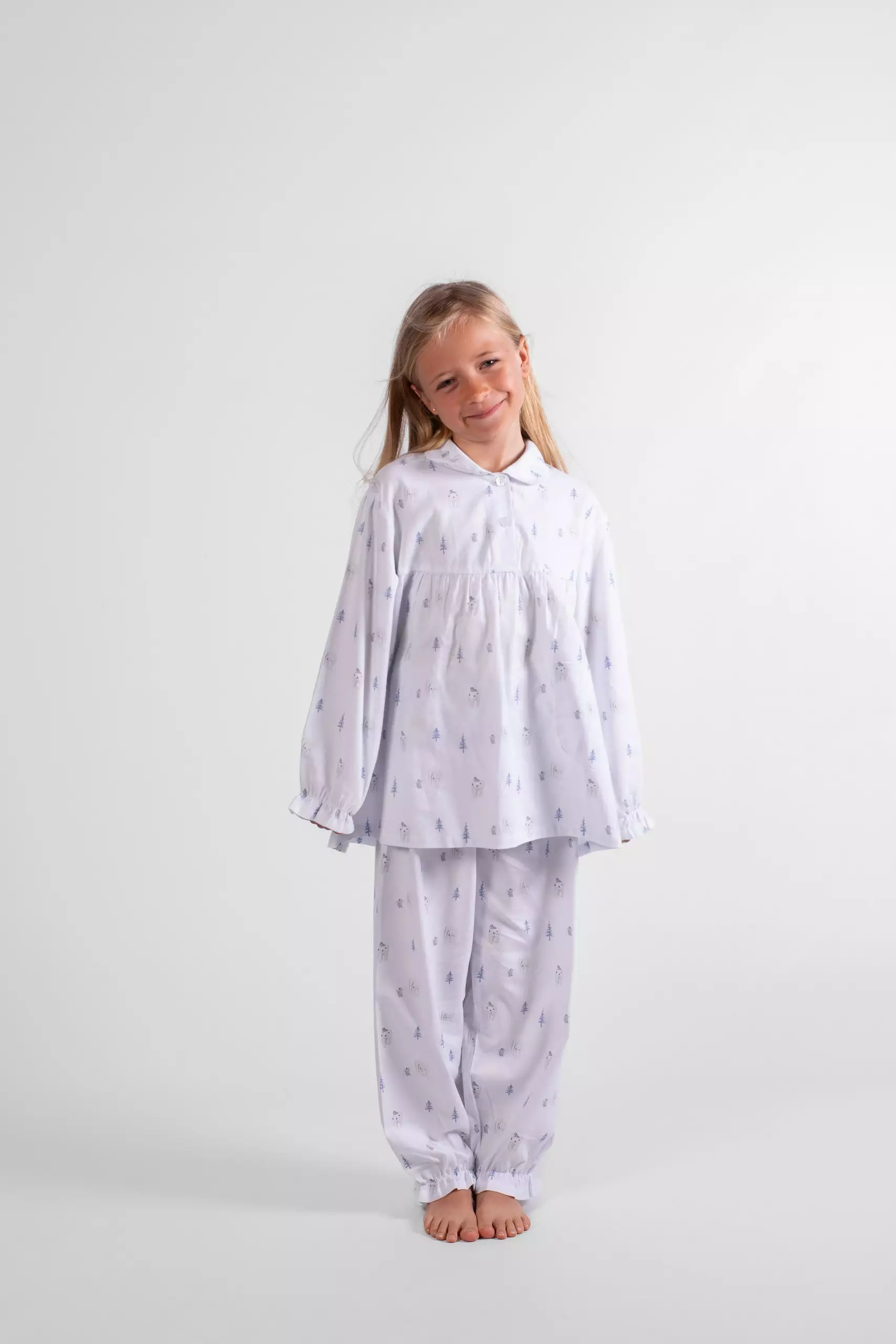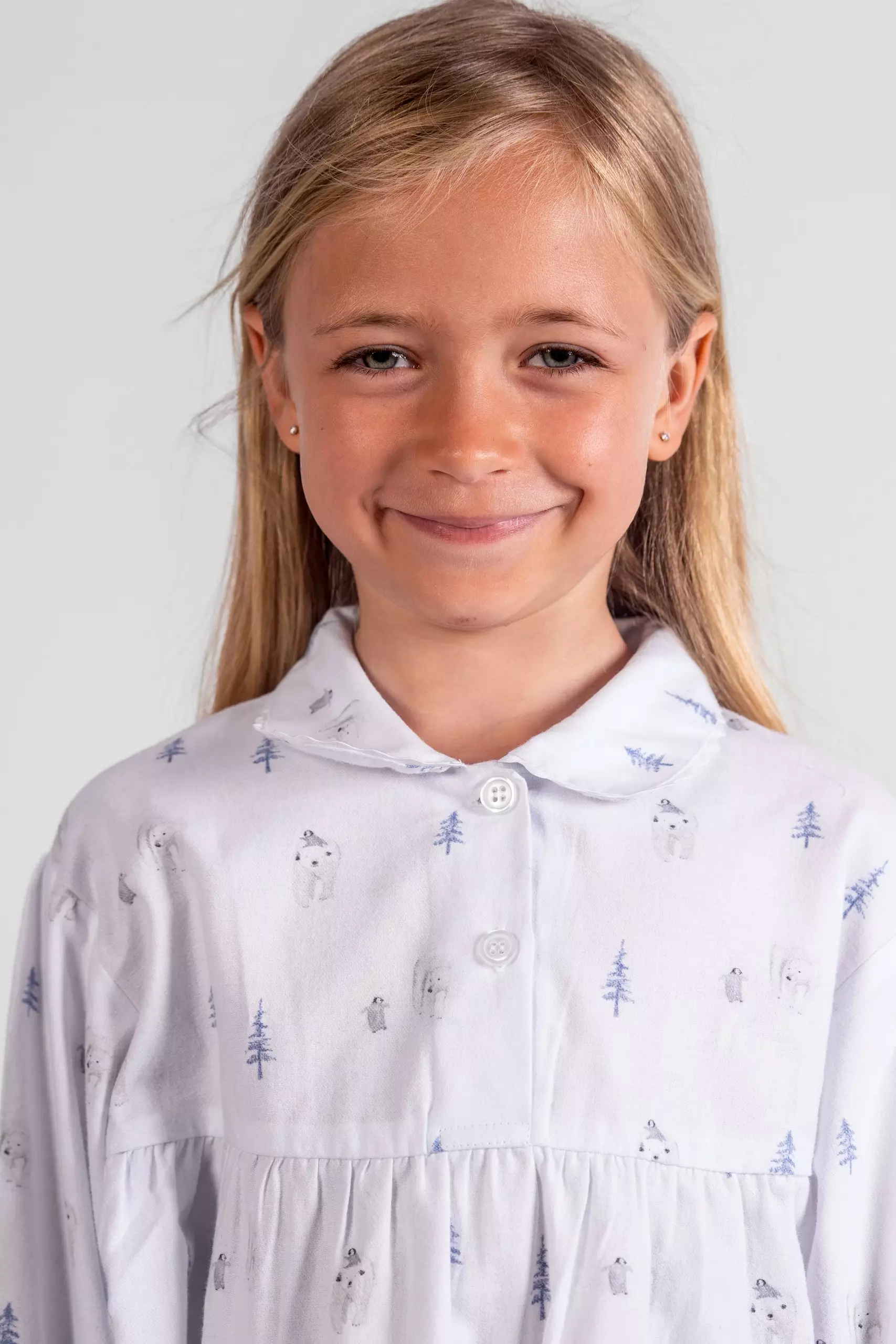 Pyjama fille pilou/flanelle motif ours et pingouin