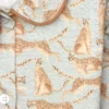 Détails : Col claudine avec passepoil, veste boutonnée légèrement évasée. Pantalon coupe droite à la ceinture élastiquée.