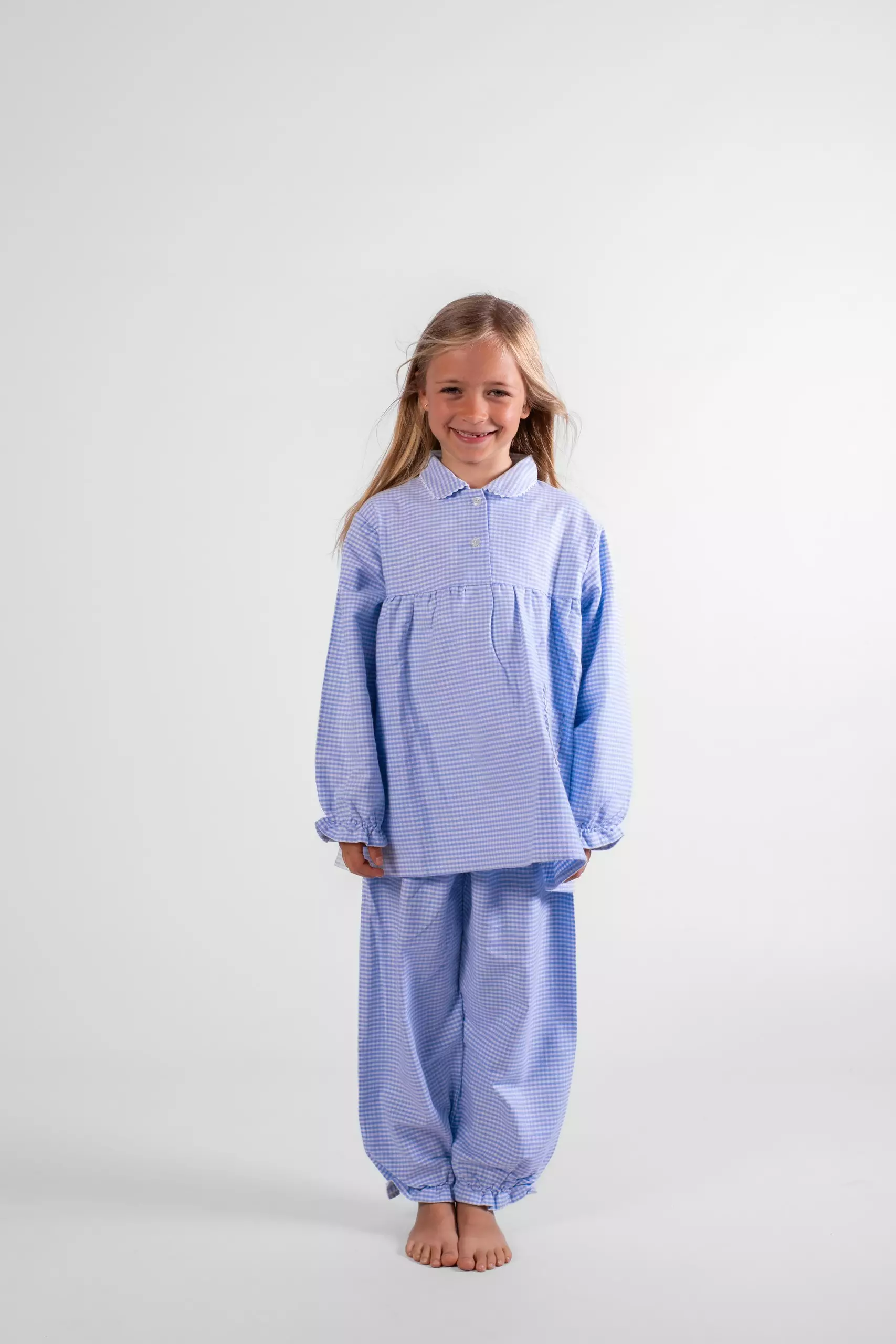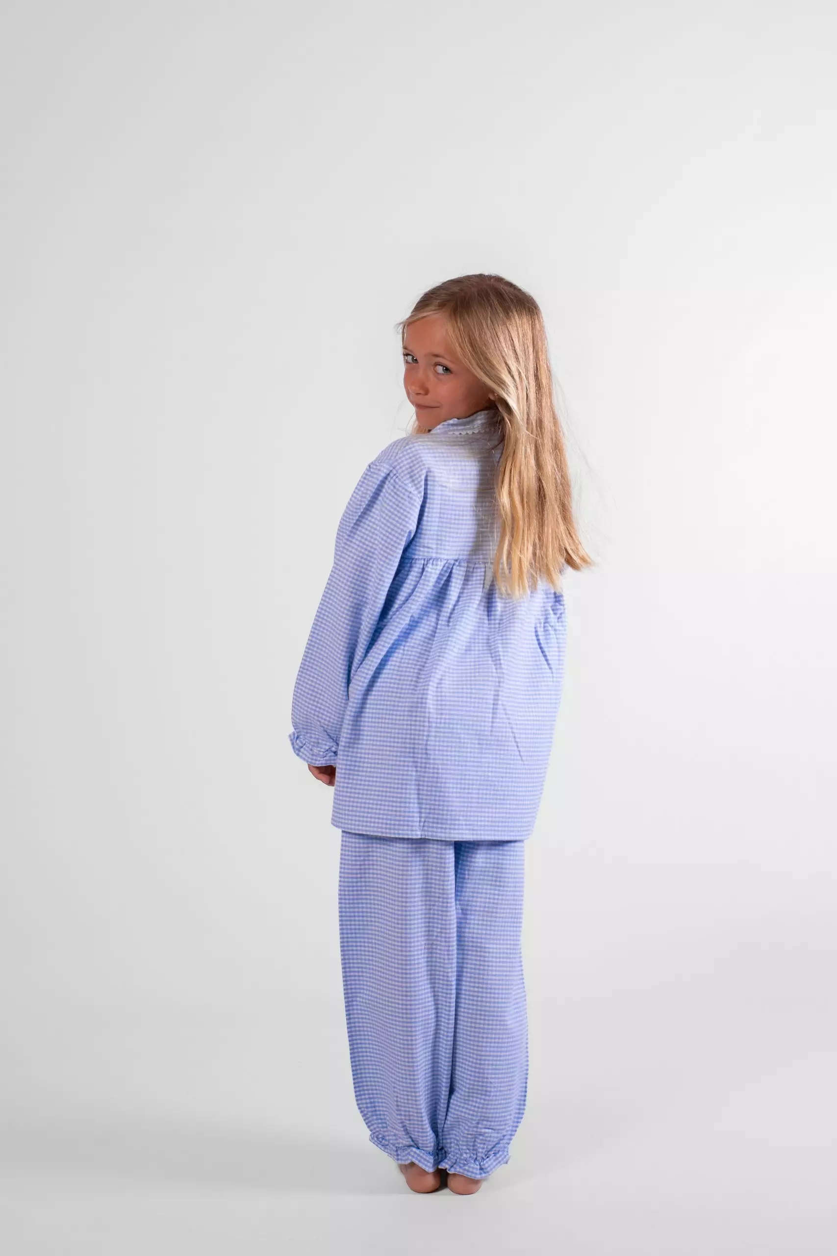 Pyjama fille hiver classique Vichy bleu , petit carreaux en flanelle-Pilou.