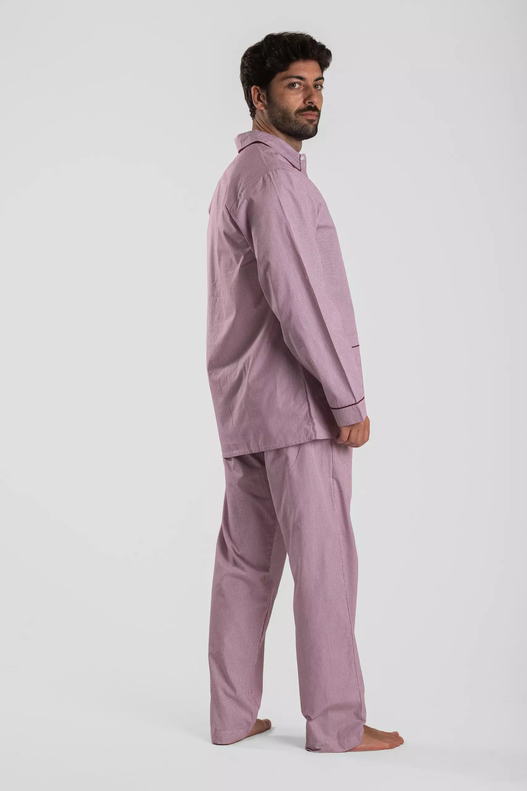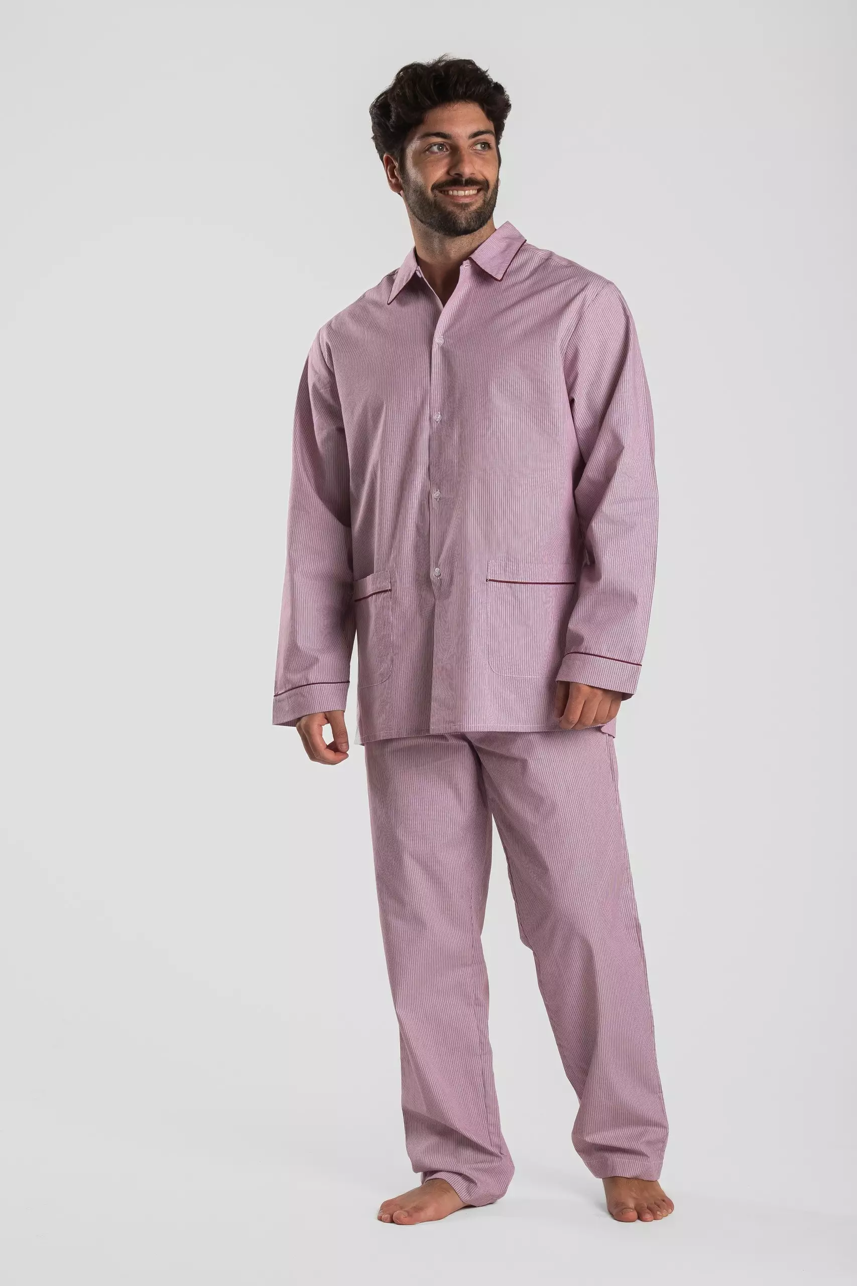 Pyjama homme deux pièces en popeline de coton rayure rouge motif Saleccia.