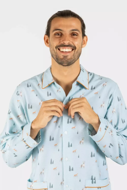 Pyjama flanelle homme motif ski montagne – Pilou chaud.