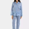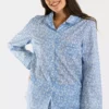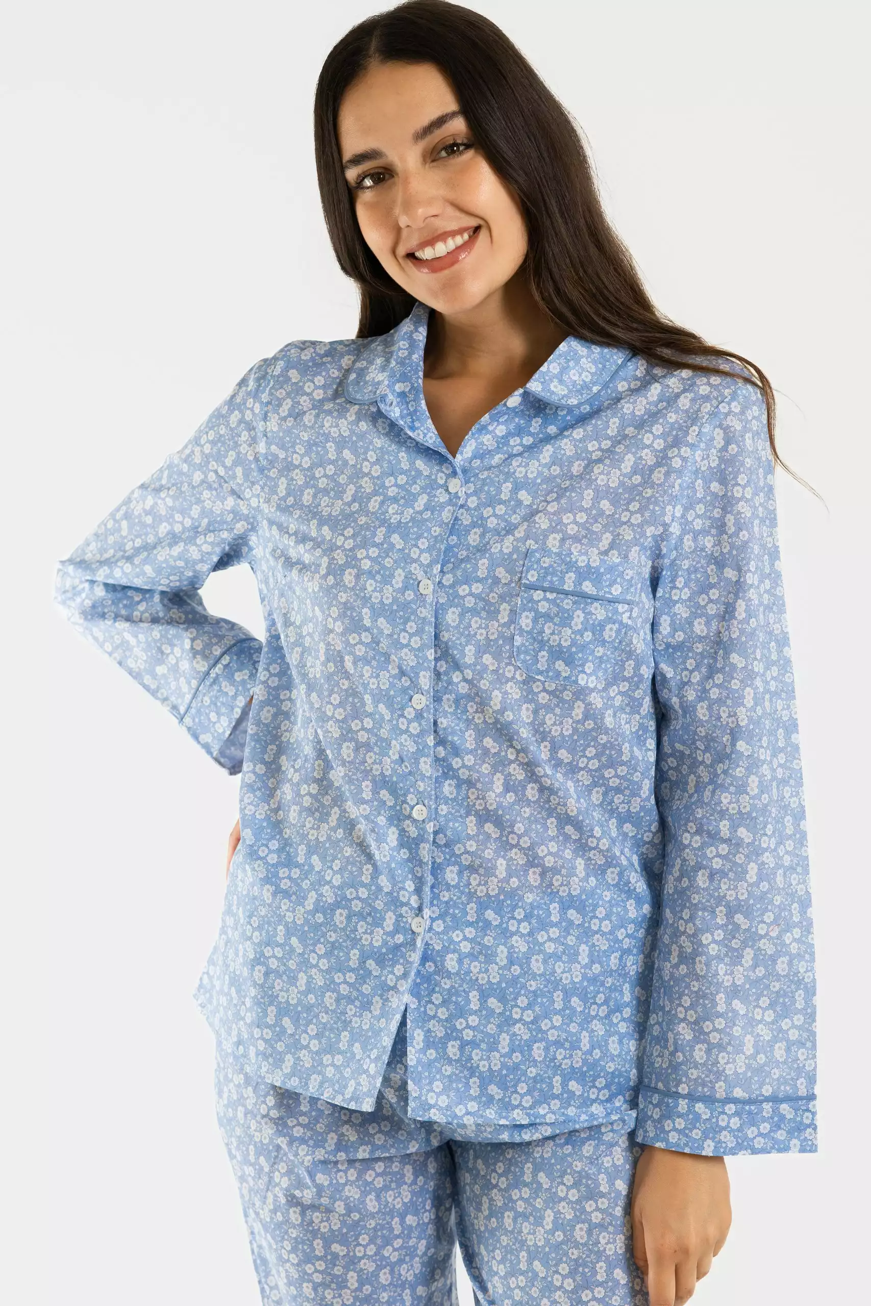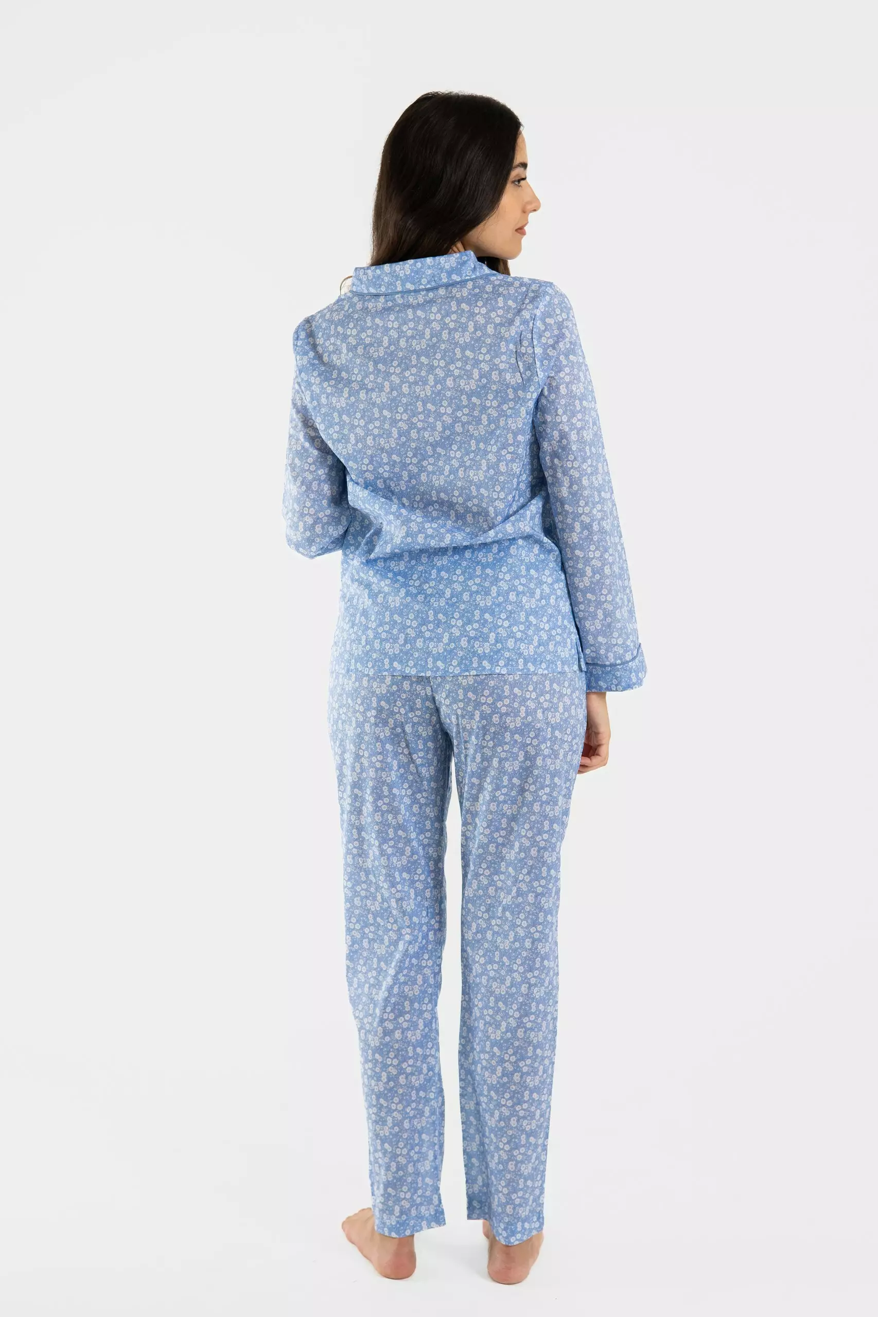 Pyjama femme léger à fleurs bleues en voile de coton.