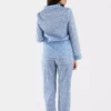 Détails : Chemise manches longues boutonée avec poche poitrine, pantalon, col et poches bordés d’un passepoil assorti.