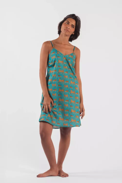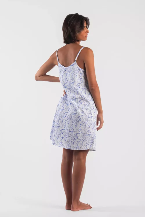 Une nuisette en coton à fines bretelles, légère et confortable, confectionnée avec soin à partir de superbes cotons, ornée de designs uniques, fabriquée au Portugal.